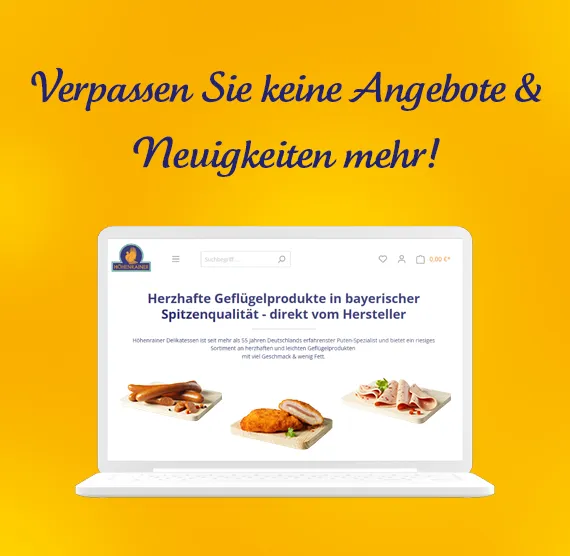 Ist Ihre Geflügelfleisch-Bestellung bei Ihnen angekommen, können Sie die ganze Produktvielfalt von Höhenrainer erleben. Probieren Sie spannende neue Rezepte mit Geflügel- und Putenfleisch und entdecken Sie neue Möglichkeiten unsere Produkte zuzubereiten. Unsere hauseigenen Geflügelexperten haben über das ganze Jahr hinweg und zu jedem Anlass passende Tipps für leckere Gerichte und bieten geflügelbasierte Ernährungstipps.